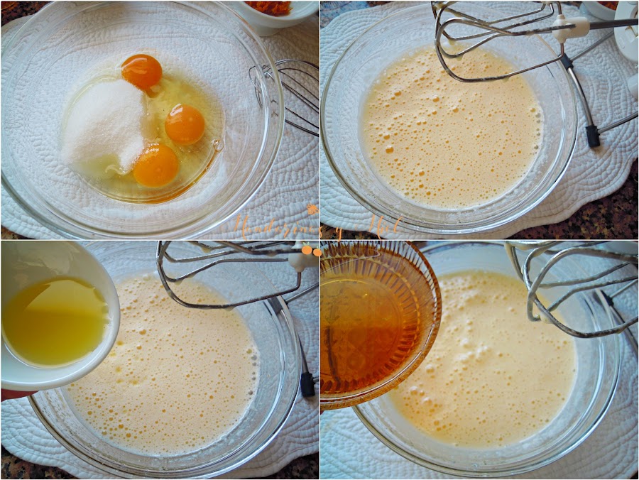 Añade el aceite y el Moscatel y sigue batiendo.