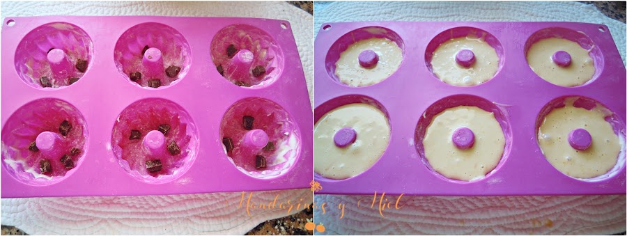 Mi molde de silicona es de 6 mini bundtcakes, y como me sobró mezcla y no quería esperarme a volver a rellenarlos, lo que hice fue ponerla en papeles de magdalenas pero algo diferentes.