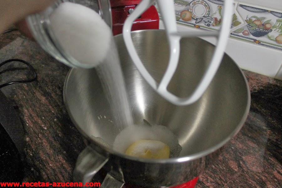 Ponemos en una amasadora o en un bol la mantequilla y el azúcar, la batiremos hasta formar una crema.