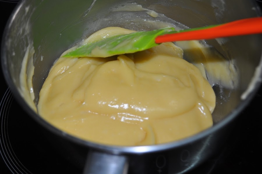 5. Añadir los huevos 1 por 1 e integrarlos con una cuchara de madera. No echar el siguiente hasta que el primero no esté bien integrado. En mi caso han sido 3 pero hay que estar pendiente si hacen faltan más o menos. La masa estará lista para meter en una manga pastelera.