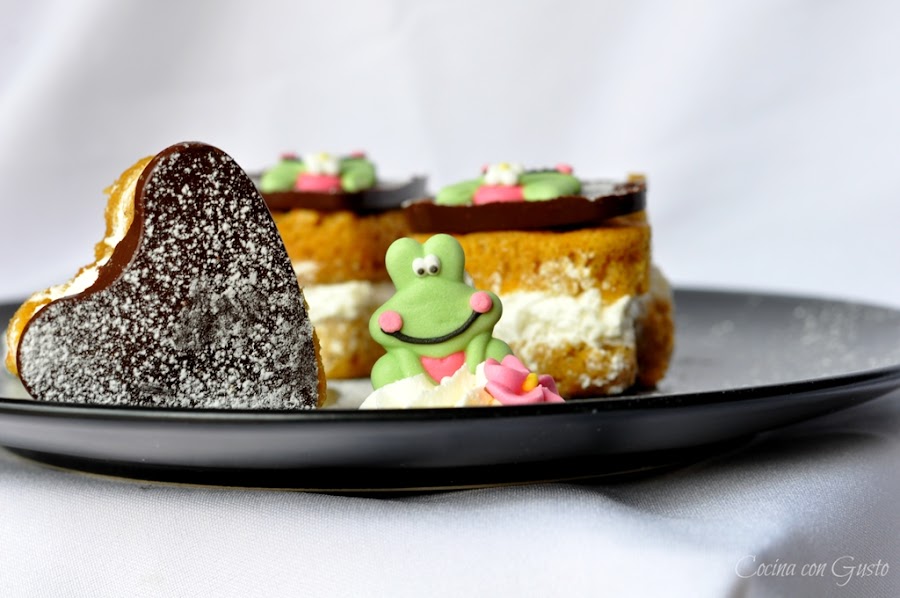 Hacia un tiempo que no participaba en este reto. Y es que yo de imaginación ando escasa, necesito que me lo den todo hecho pero este mes creo que he dado con una receta rica digna de un príncipe, aunque este sea una rana. Estos Bocaditos de zanahoria, panela y jengibre están riquísimos y si además los rellenamos de nata montada (crema de leche) y les damos un toque de chocolate......ya no te cuento.