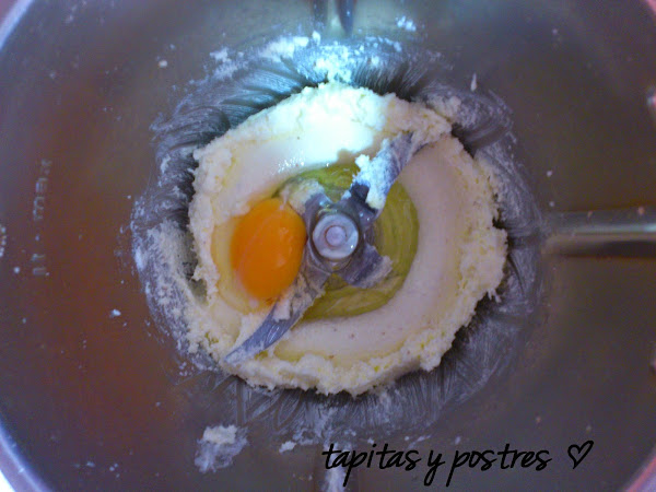 Ahora ponemos la mantequilla y el azúcar y la batimos.
