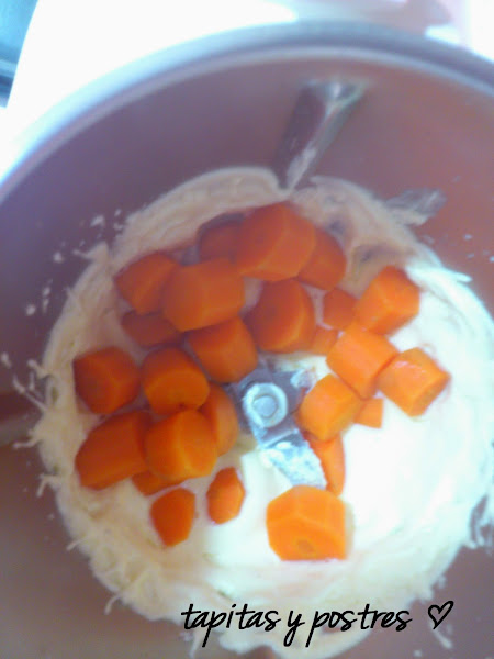 Añadimos las zanahorias cocidas, vamos a triturar.