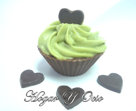 4. Colocamos la crema en una manga pastelera con boquilla de estrella y rellenamos los moldes de chocolate. Decoramos cada bocadito con un corazón o como más nos guste.