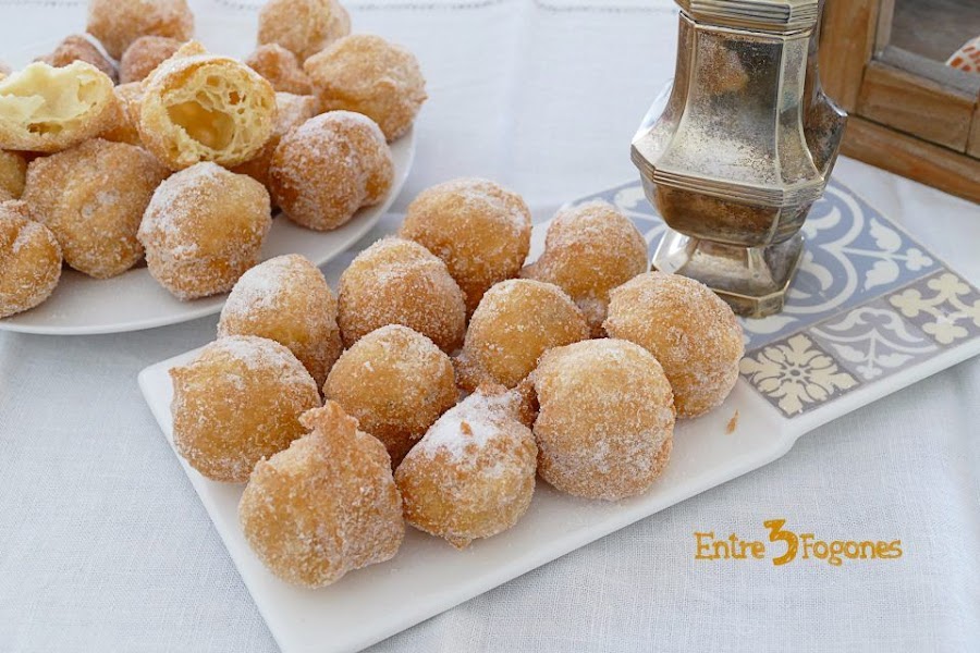 Y para disfrutar el doble, que tal si preparáis estos buñuelos de viento de Entre 3 Fogones.