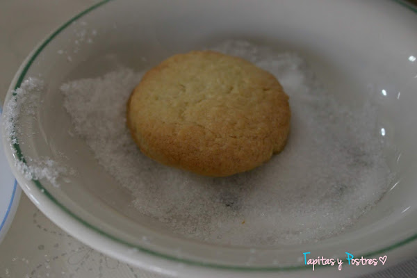 Ponemos el resto del azúcar en un plato y con cuidado, pues queman mucho, vamos pasando los bocaditos uno a uno por el azúcar para rebozarlos.