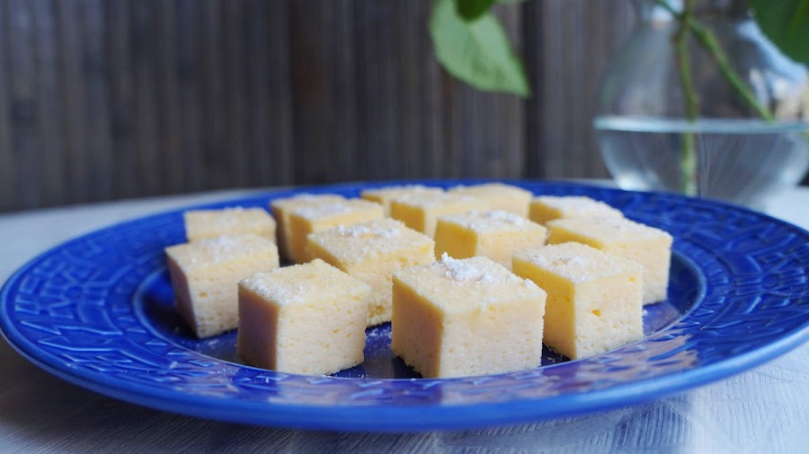 Esta es mi aportación del famoso bizcocho japonés, si se analiza realmente es como un soufflé y ya sabéis que esta receta tiende a reducirse de altura en cuanto lo sacas de la fuente de calor. Por eso decidí darle otra presentación, porque como tarta/bizcocho quedaba poco estético, otra opción es darle una cobertura de mermelada y chocolate negro, para darle más contraste e intensificar su sabor, fue lo que hice con estos bocaditos y quedaron muy bien.
