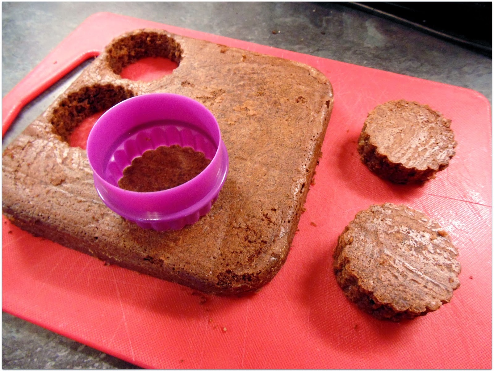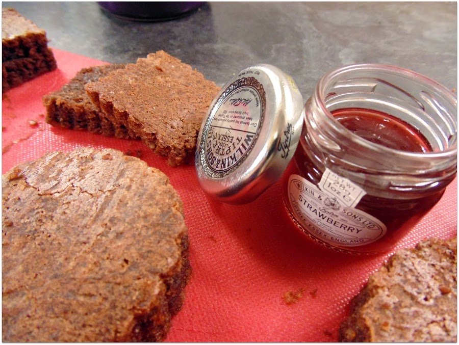 Dejamos enfriar en una rejilla y luego nos disponemos a cortar, rellenar y a montar las minitartitas. En mi caso he utilizado mermelada de fresa pero podéis utilizar la clásica de albaricoque o la que prefiráis.