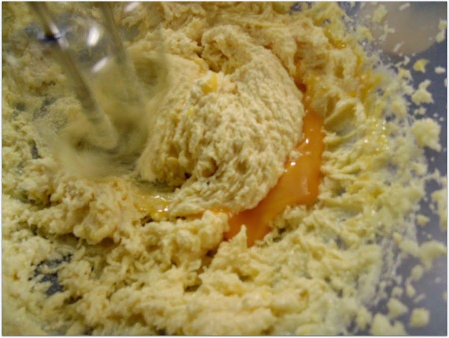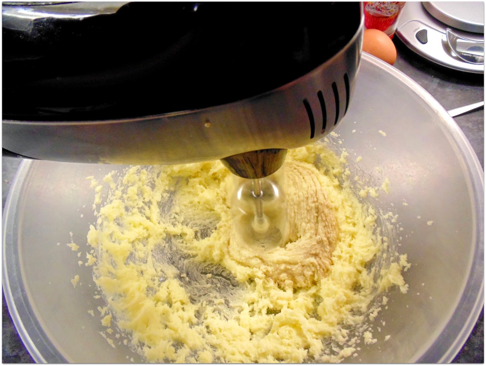 Comenzamos a hacer la mezcla para el pastel batiendo en primer lugar el azúcar con la mantequilla a punto pomada. Agregamos la cucharadita de vainilla. A continuación vamos añadiendo las yemas una a una sin dejar de batir y la pizca de sal.