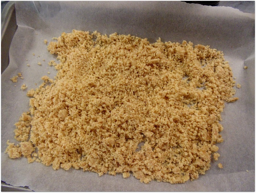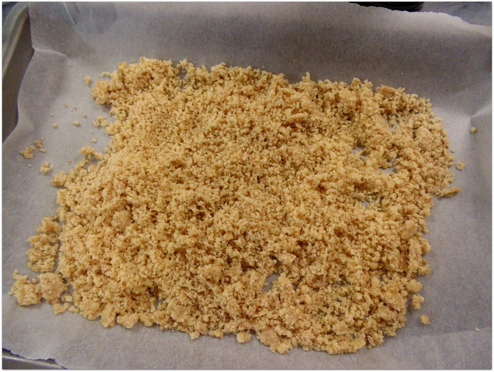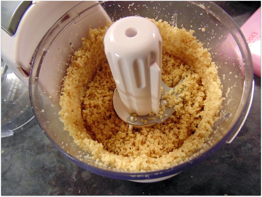 Trituramos las nueces con un molinillo o picadora y le damos un golpe de horno. Unos 5 minutos a 170º. ¡Tened cuidado que no se doren demasiado!
