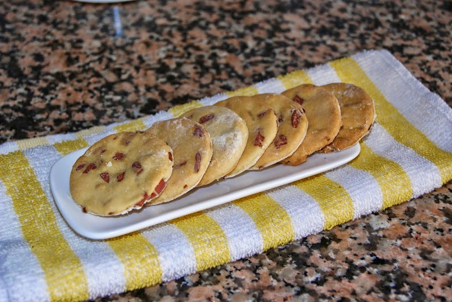 Ponemos el horno a calentar a 180º C. Tamizamos la harina y la mezclamos con los huevos la mantequilla ablandada, una pizca de sal y las salchichas muy picaditas. Amasamos con las manos hasta que tengamos una masa uniforme. En una superficie lisa espolvoreamos harina y extendemos la masa, que cortaremos con la forma que prefiramos. Colocamos en una fuente de horno y horneamos durante unos 15- 20 minutos, hasta que veamos que a masa está cocida. Dejamos enfriar y servimos.