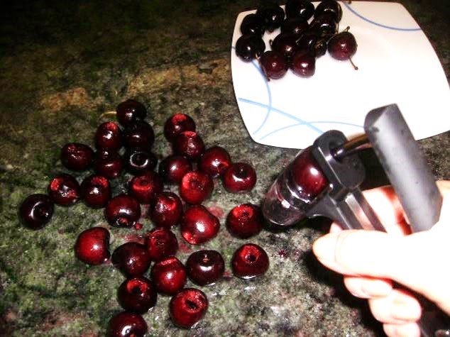 Sacamos las cerezas a los 4 minutos, y dejamos reduciendo el almíbar que nos ha quedado.
