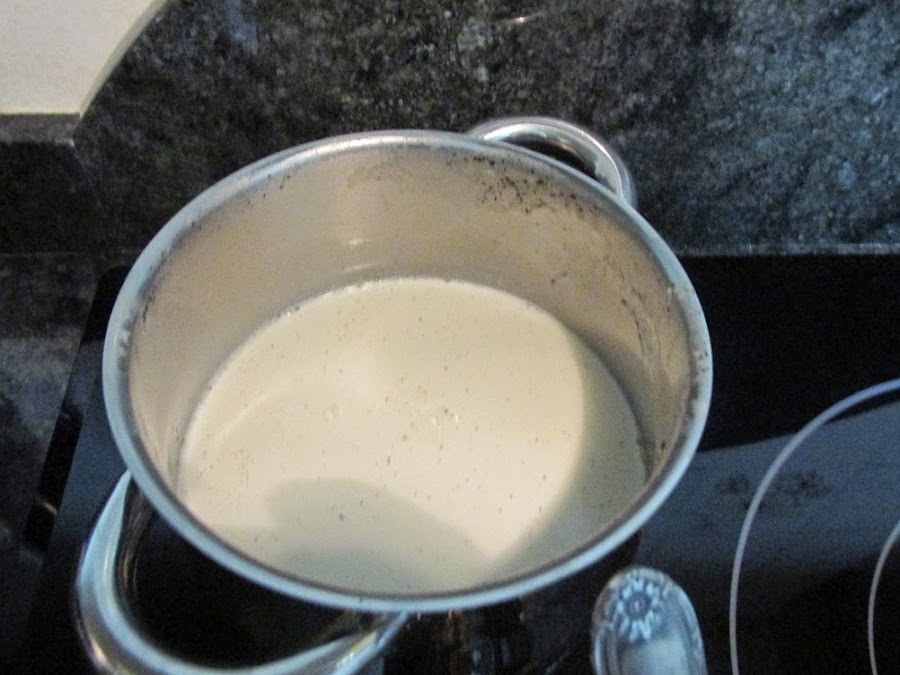 La vaina de vainilla, la abrimos al medio y sacamos las semillas, echamos vaina y semillas a la leche y llevamos al fuego cuando rompa a hervir retiramos y dejamos emulsionar.