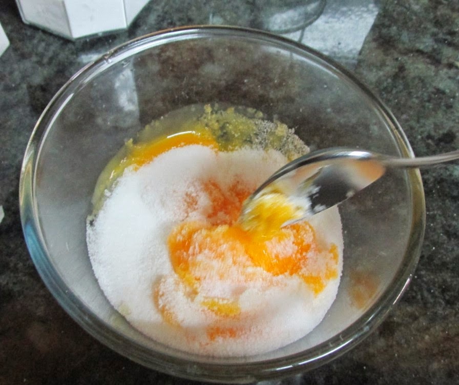 En un bol ponemos las yemas con el azúcar, removemos para que se integren bien.