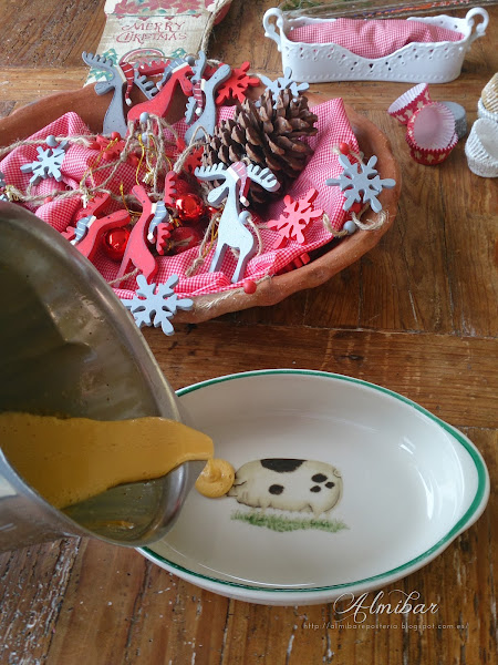 ...incorporas las yemas confitadas en un recipiente de cerámica bajo...
