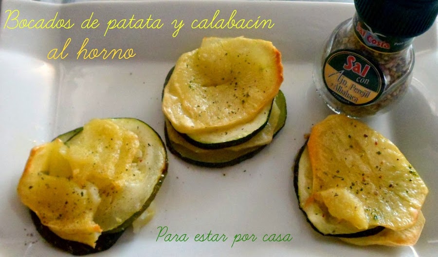 Para presentar estos bocados, simplemente, los pondremos intercalando rodajas de calabacín y patata.
