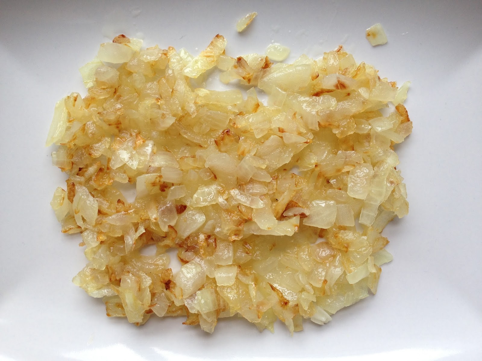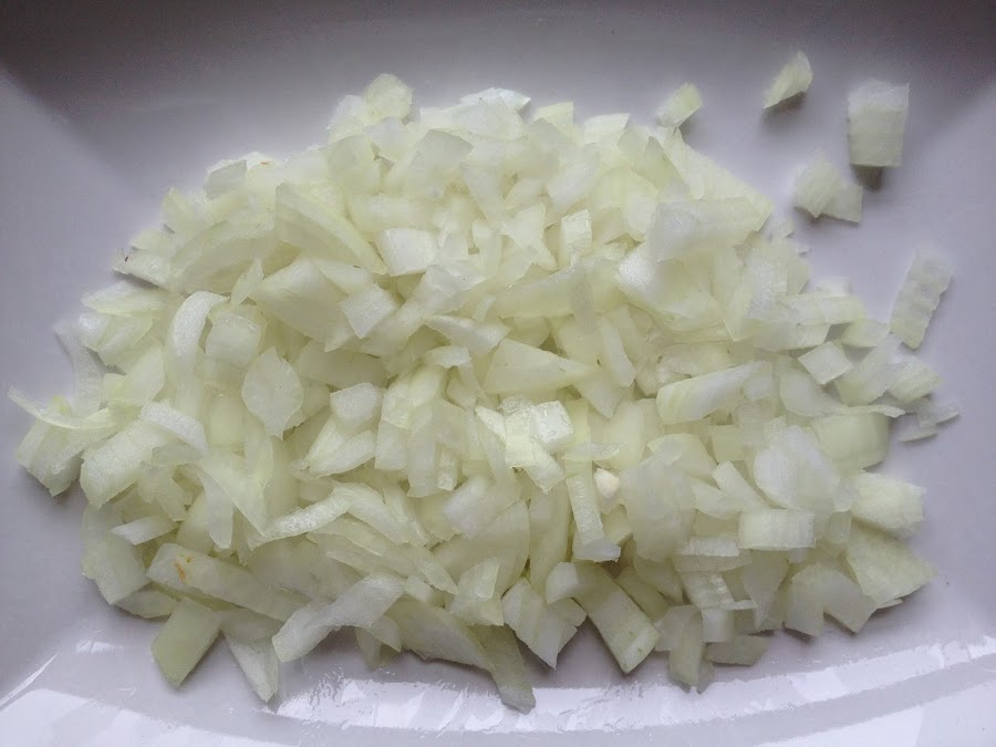 1 Comenzamos cortando la cebolleta en brunoise o en cubitos pequeños. Mientras que cortamos la cebolleta ponemos a calentar el aceite en la sartén .