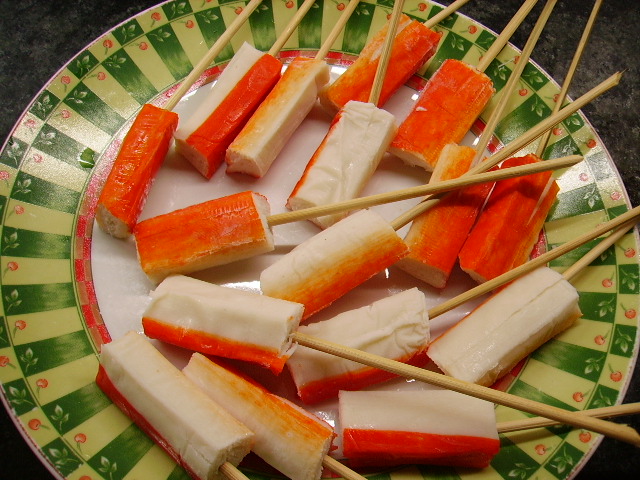 2.- Cortamos las bocas en dos y pinchamos en los palillos.