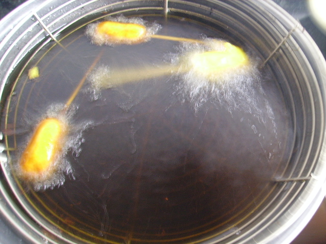 3.- Pasamos por la masa, procurando que quede bien impregnada por todos lados, escurrimos el sobrante.