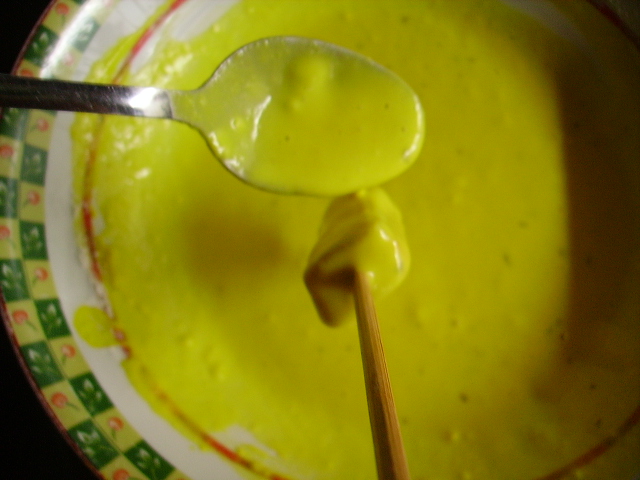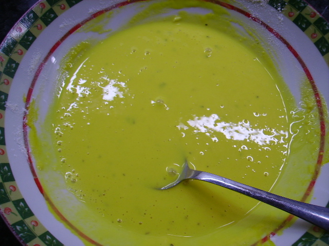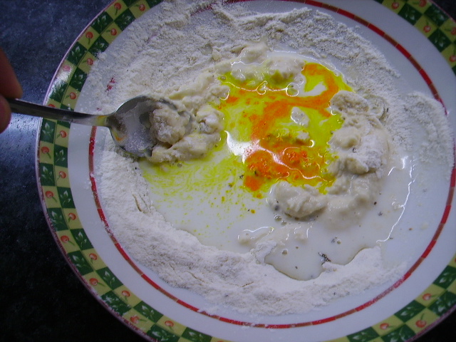 1.- Mezclar la harina con la levadura, la sal y el colorante e ir agregando la cerveza poco a poco. Debe quedar en su punto, ni muy espesa ni muy liquida. Añadir más harina o cerveza según pida. Las cantidades dependen del tipo de harina que se utilice.