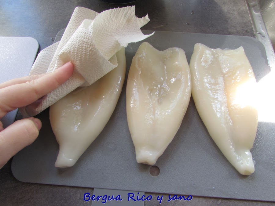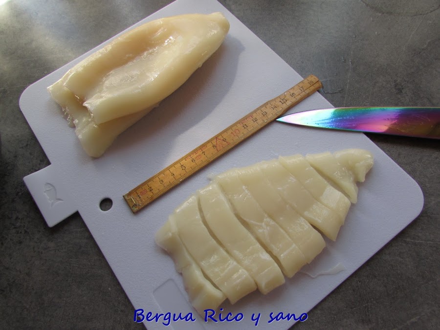 * Si tienes que limpiar el calamar, aquí tienes las instrucciones: Limpiar. Yo los compré ya limpios.