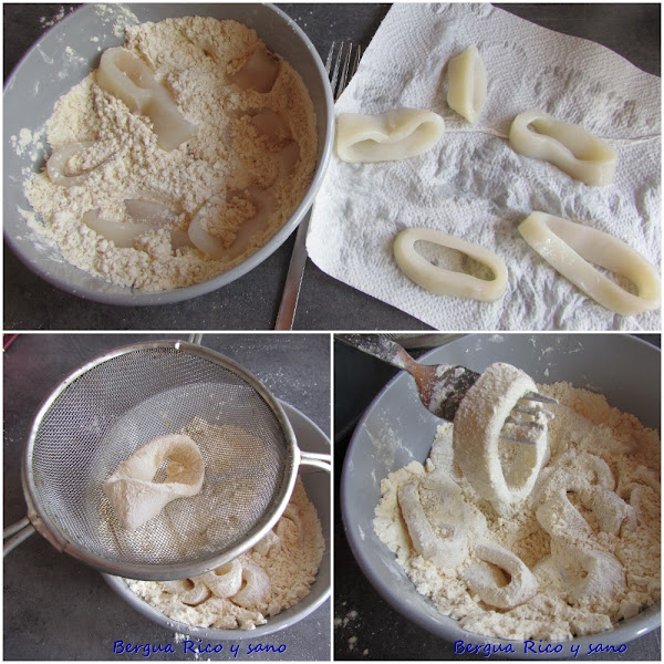 * Hay quien añade sal y pimienta a la mezcla o a las anillas de calamar, pero eso los haría soltar agua, así que no lo aconsejo.