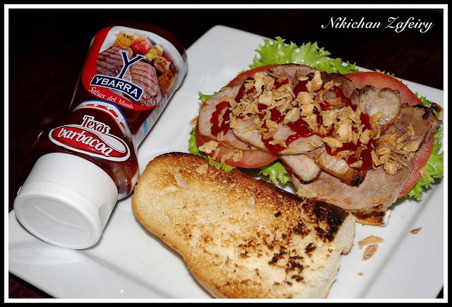 - Una buena dosis de salsa barbacoa y la cebolla.