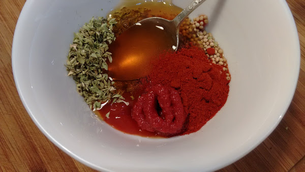 Mezclamos a partes iguales todos los ingredientes de la salsa bbq.