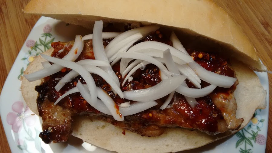 Cortamos la cebolla en juliana, ponemos encima y montamos el bocata.