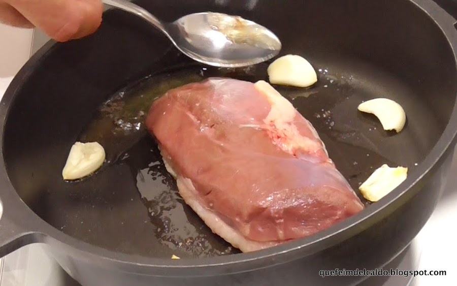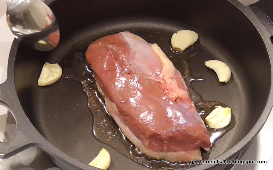 Cada 5 minutos iremos retirando la grasa que desprende el magret, este paso es muy importante, el magret tira bastante grasa.