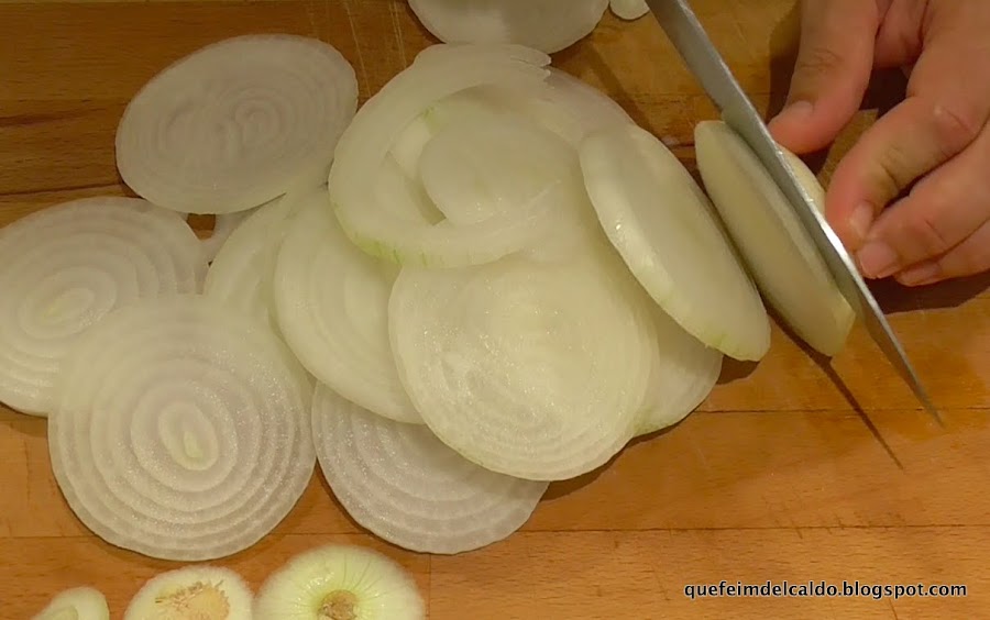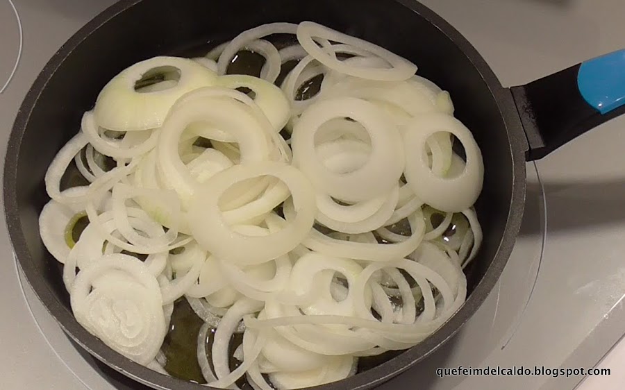 Ponemos a pochar la cebolla, ya sabéis como a mí me gusta, muy poco a poco durante 1 hora ó 1 hora y media.