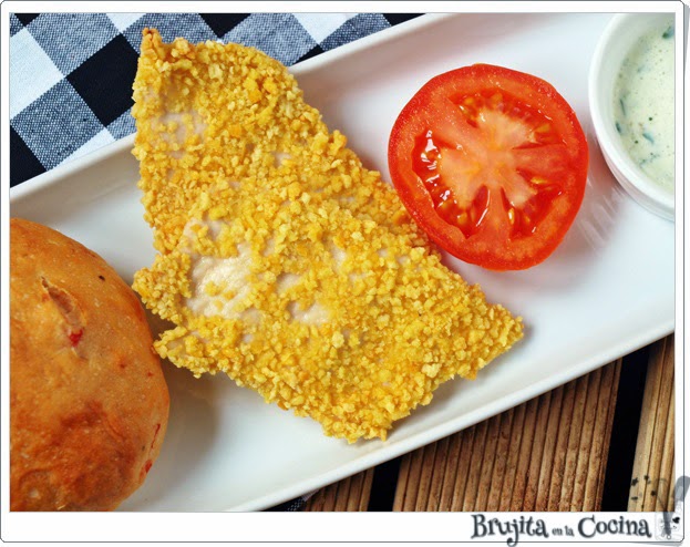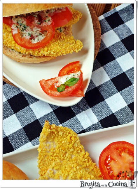 Hoy es un bocata muy fácil pero no por ello menos rico, el pan esta vez es casero pero podéis utilizar el que más os guste, la gracia la aporta la salsa y que en lugar de pan rallado he utilizado una mezcla para rebozado al limón y que va luego al horno.