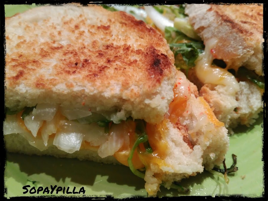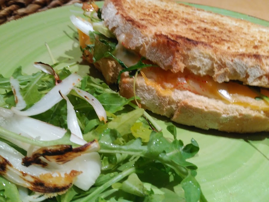 - Cerrar los bocadillos con la otra loncha de pan y tostar en una sartén con muy poquito aceite, por los dos lados.
