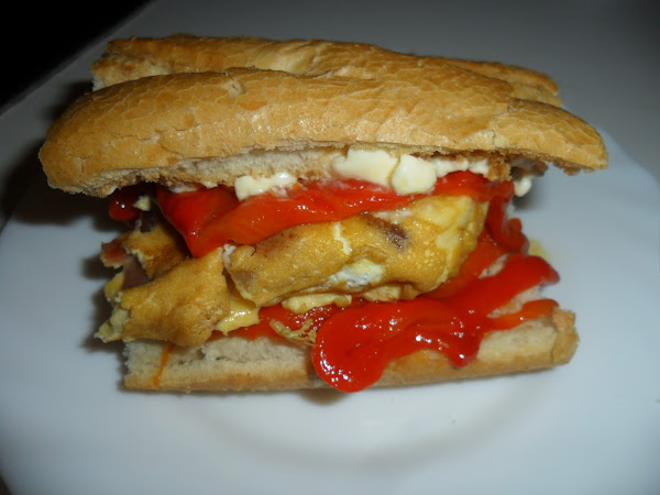 Para este bocata solo he utilizado parte de los pimientos asados y pelados.