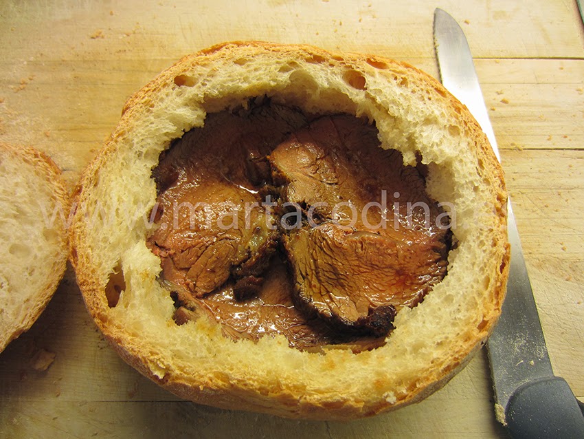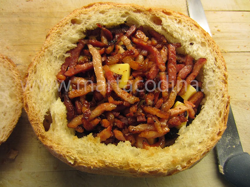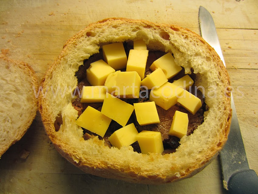 Abrir el pan de pagès como si le hicieseis una tapa y vaciarle la miga.