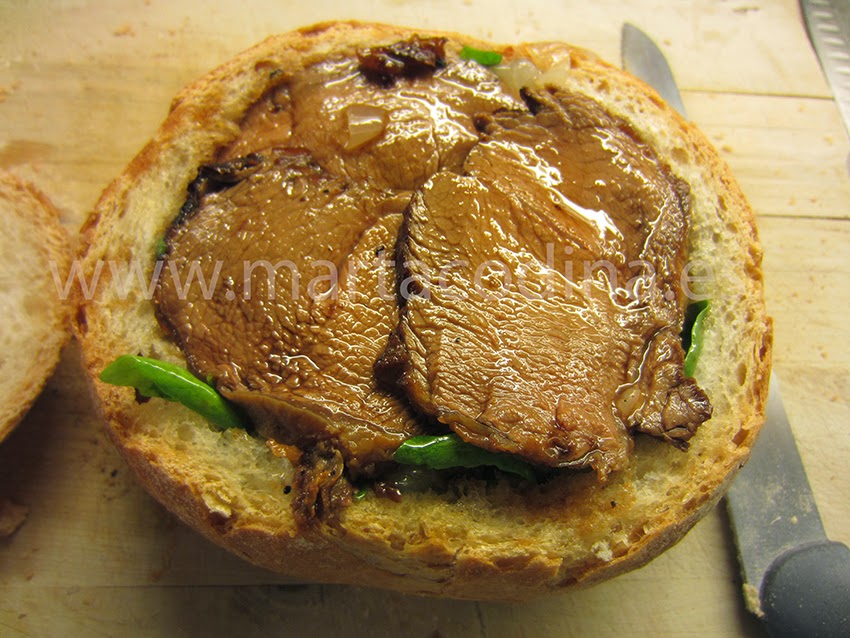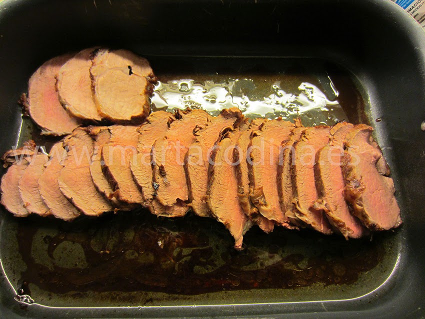 Cortar a filetes el redondo y conservarlos en su jugo.