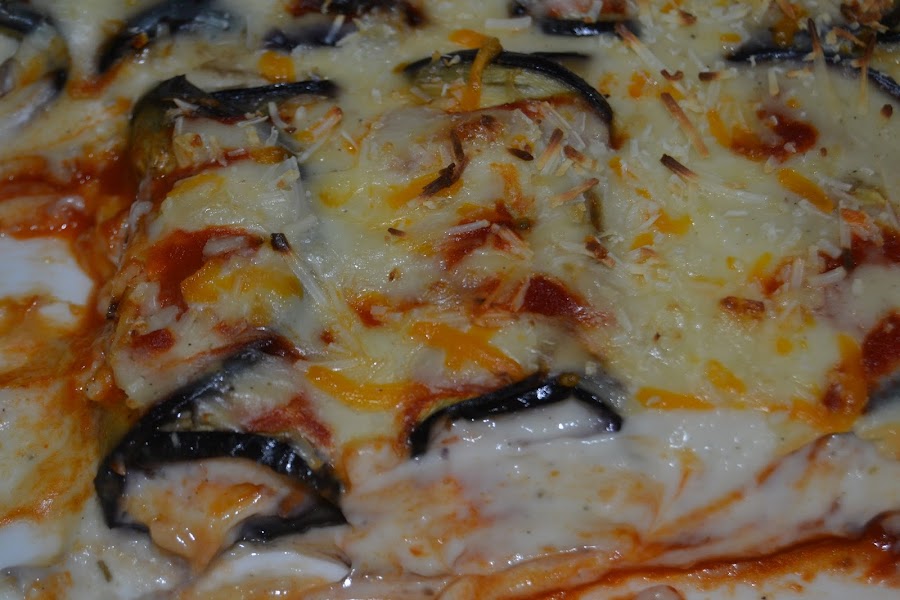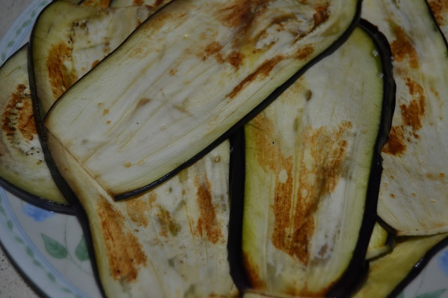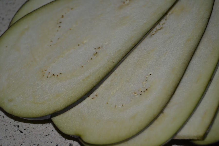 Las berenjenas las lavamos y las cortamos a lo largo en lonchas finitas, yo no las pele pero si os gustan mas sin piel lo podéis hacer.