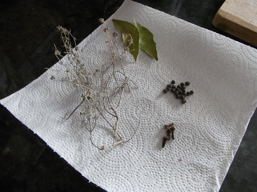 2 hojas de laurel y 1 ramita de tomillo.