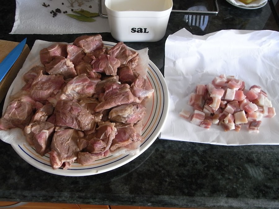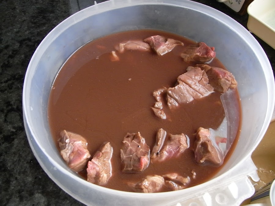 Lo primero es poner a macerar la carne cortada en trozos medianos con el vino toda la noche en el frigorífico.