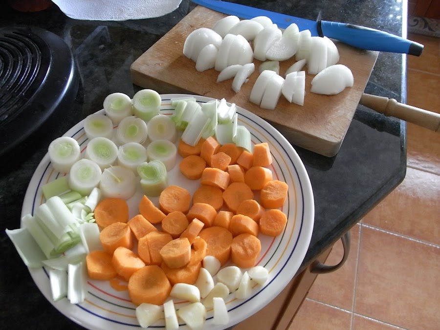 Se prepara toda la verdura, se lava y se corta a rodajas no muy finas porque va a hervir bastante y sino se va a deshacer.
