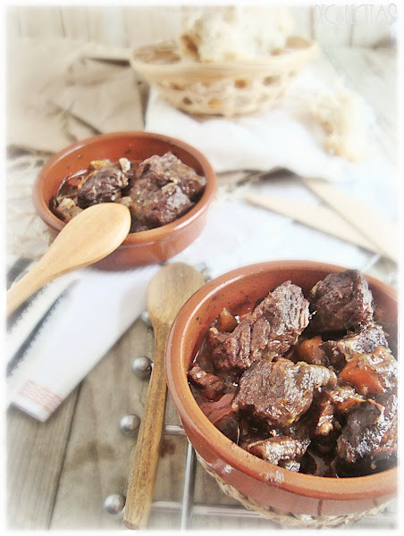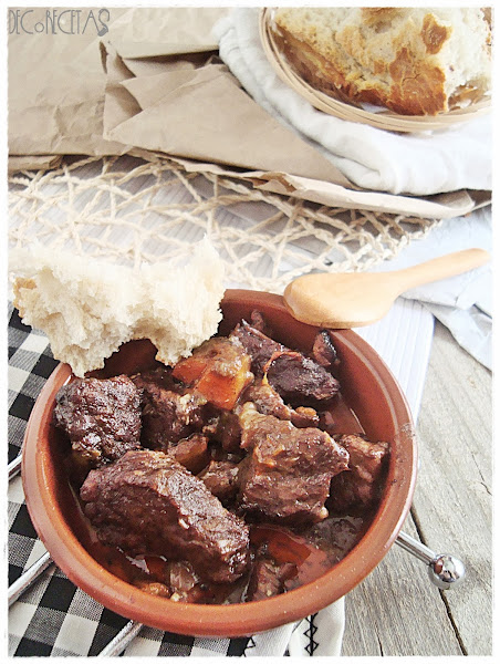 Los guisos con vino tinto son mis favoritos. pienso que le dan un color, aroma y sabor especial característico. Además si el guiso es con carne de ternera mejor que mejor ya