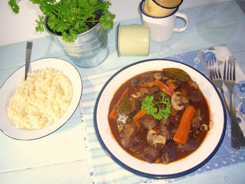El bouef bourguignon es un plato cuyo origen se sitúa en la región francesa de la Borgoña, a 100 km al sur de París. Es un estofado de buey, en esta zona es muy reconocido por su sabor y por la poca grasa que el buey de raza Charolais aporta al plato, ya que este que sólo se alimenta de heno, cereales y forraje, lo que da una carne muy tierna y sana, perfecta para este tipo de preparaciones. Normalmente este plato se cocinaba durante dos días, acompañado de un bouquet garni y el clásico vino de borgoña, durante este tiempo se conseguía que todos los olores quedarán impregnados en el guiso. El primer chef que publicó la receta fue Auguste Escoffier y lo hizo a principios del SXX, en 1903 utilizó una pieza completa de buey para hacer este estofado, llevándolo a formar parte de la alta cocina. Más tarde, fue Julia Child quien lo popularizó, aunque en este caso, la carne iba troceada. . A finales de agosto se celebra en Borgoña la Fiesta de Charolais, donde uno de los platos estrellas es este Bouef Bourguignon que se ha hecho conocido en todo el mundo como uno de los grandes platos de la cocina francesa.