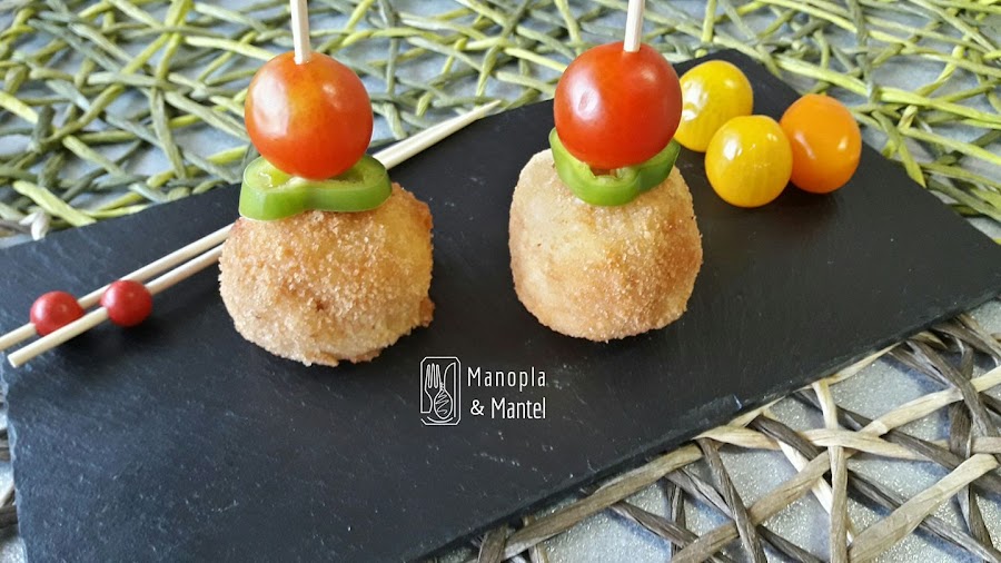 Hacemos bolas con la masa y pasamos por harina, huevo y pan rallado.
