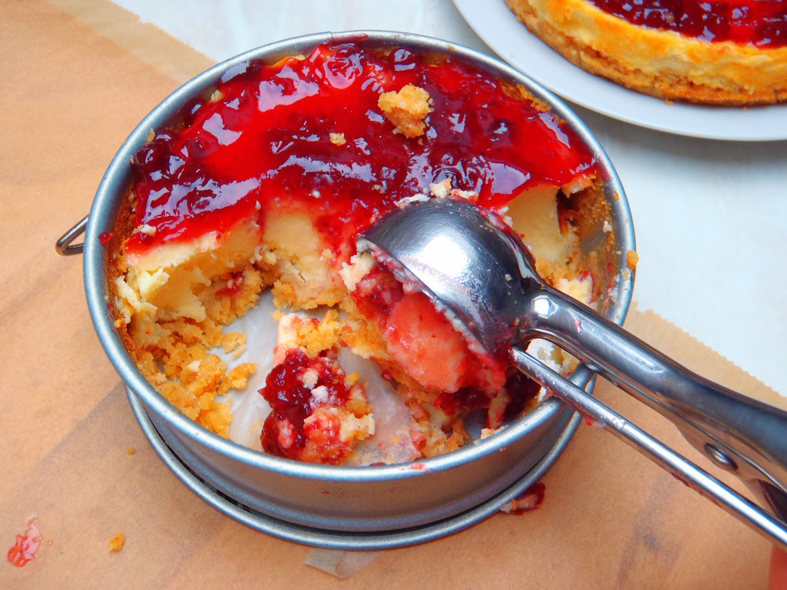 Dejamos templar y la esparcimos sobre nuestra tarta de queso ya fría.