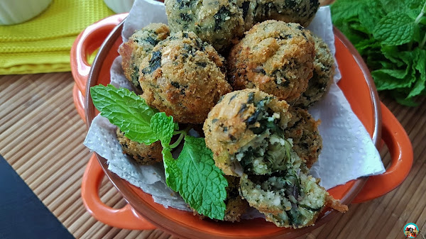 Para las bolas de queso y espinacas, utilice el relleno de un una tarta de patatas (papas) y espinacas.