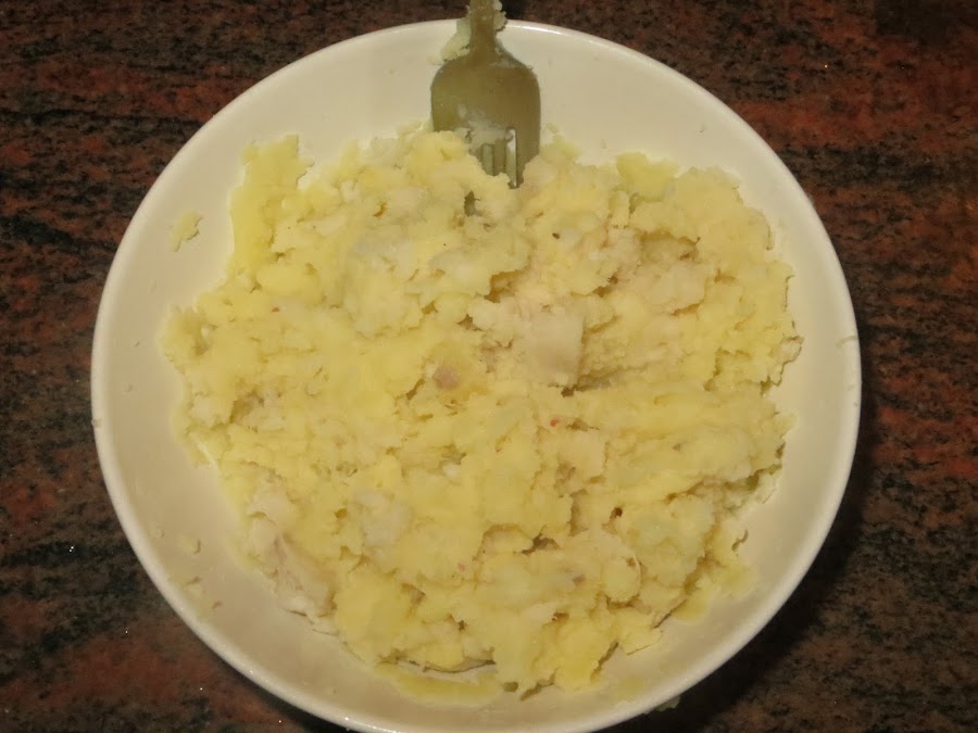 Una vez que tenéis la patata cocida, la aplastáis para hacer un puré y le añadís sal y la mantequilla le dais varias vueltas para que quede todo mezclado y a continuación añadís el pescado desmenuzado. Lo juntáis todo, lo tapáis y lo metéis a la nevera durante una hora para que adquiera más cuerpo.