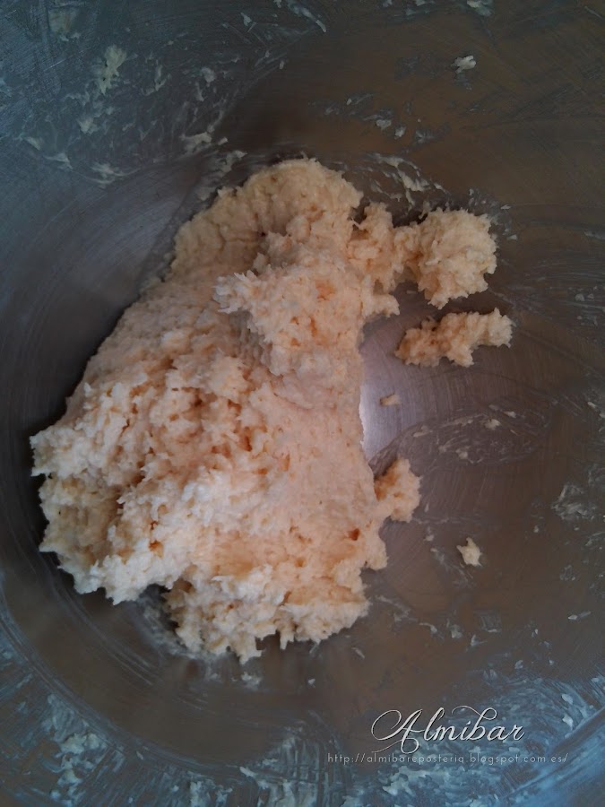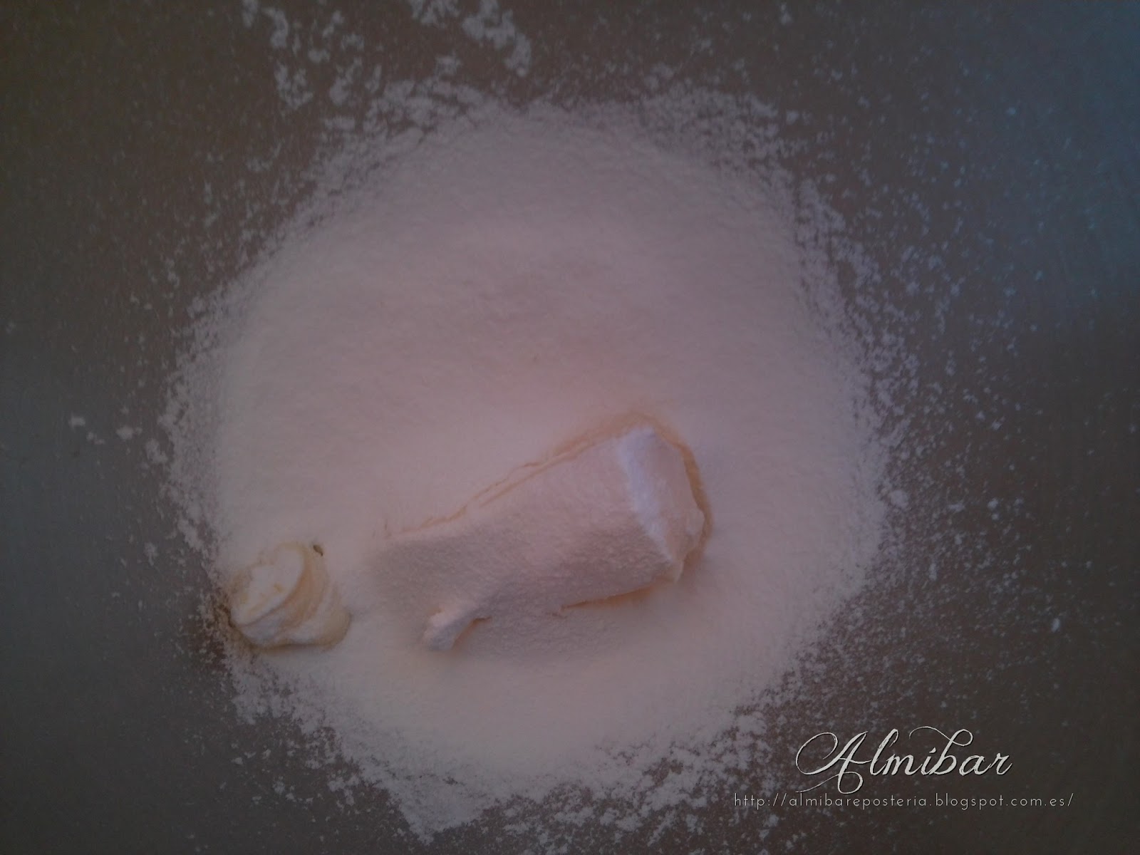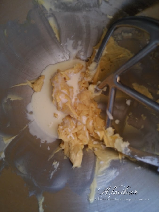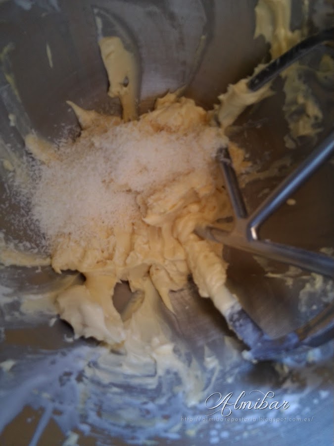 ...mezclas el polvo de azúcar tamizada con la mantequilla en una batidora eléctrica a velocidad media...