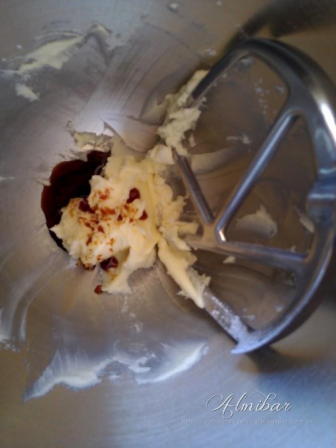 ...cuando haya blanqueado la masa y estén totalmente integrados los ingredientes, añades la vainilla...