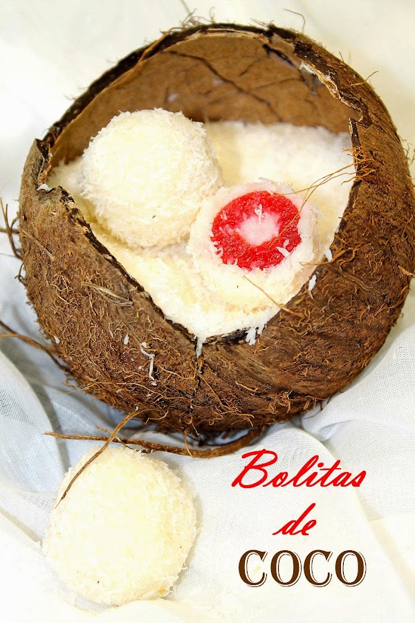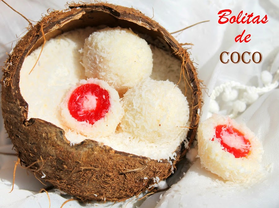 Las cantidades son mas o menos orientativas ya que según la marca del coco y su hidratación necesitaran mas o menos leche. Lo importante es conseguir una masa espesa para poder formar bolitas sin que estas se deshagan en el intento. En medio de cada una ponemos una guinda y al final rebozamos en coco rayado seco. El licor de coco da muchísimo gusto y acompaña muy bien el sabor de la guindas pero si hay peques en casa podemos prescindir de las bolitas "borrachas". Conservar en la nevera hasta su consumo.