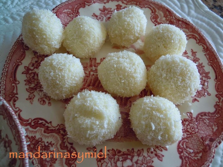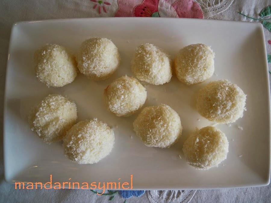 Estas bolitas de coco son un bocado sabroso, delicioso, y facilísimas de preparar.Solo necesitas coco rallado y leche condensada.